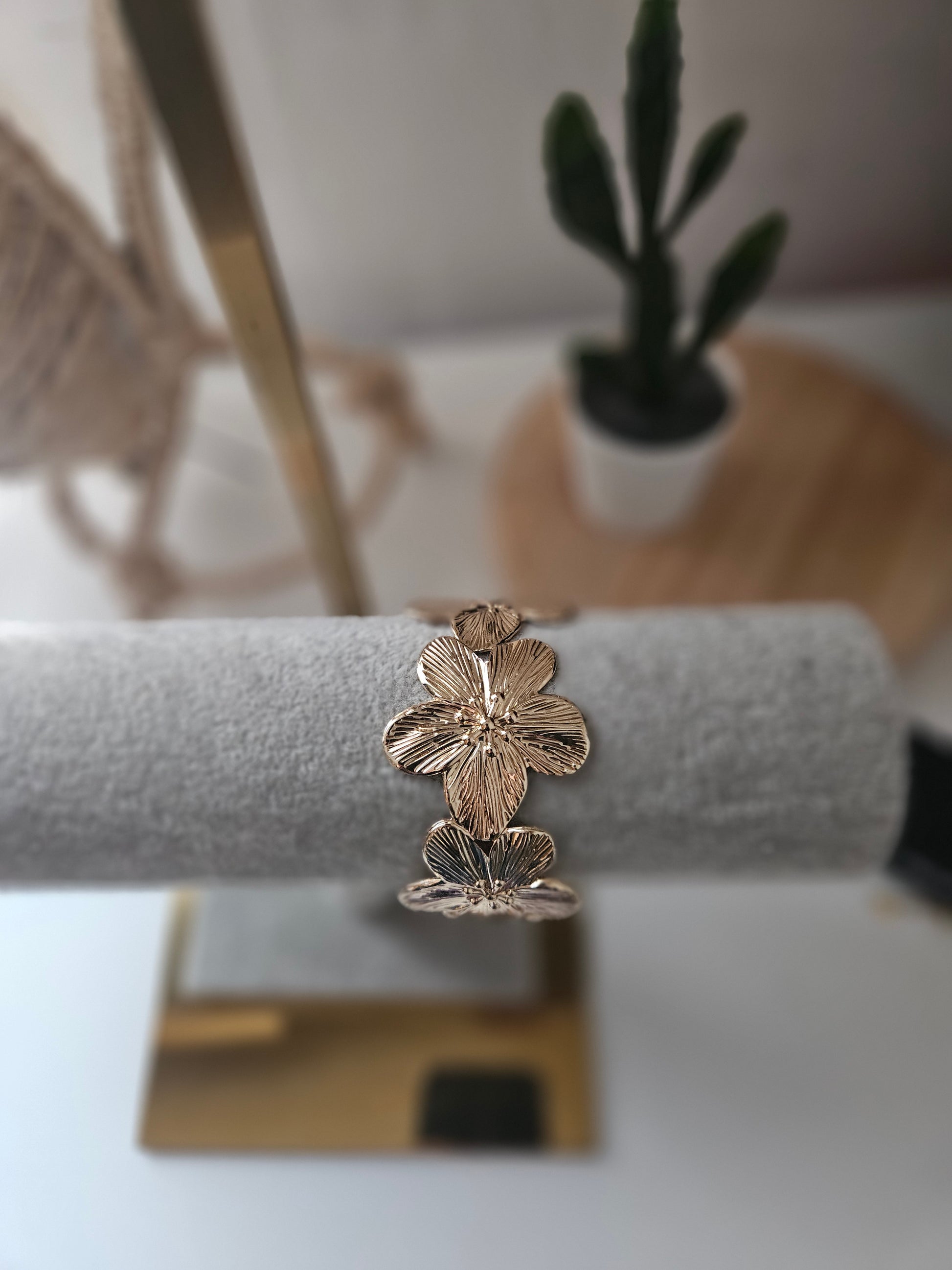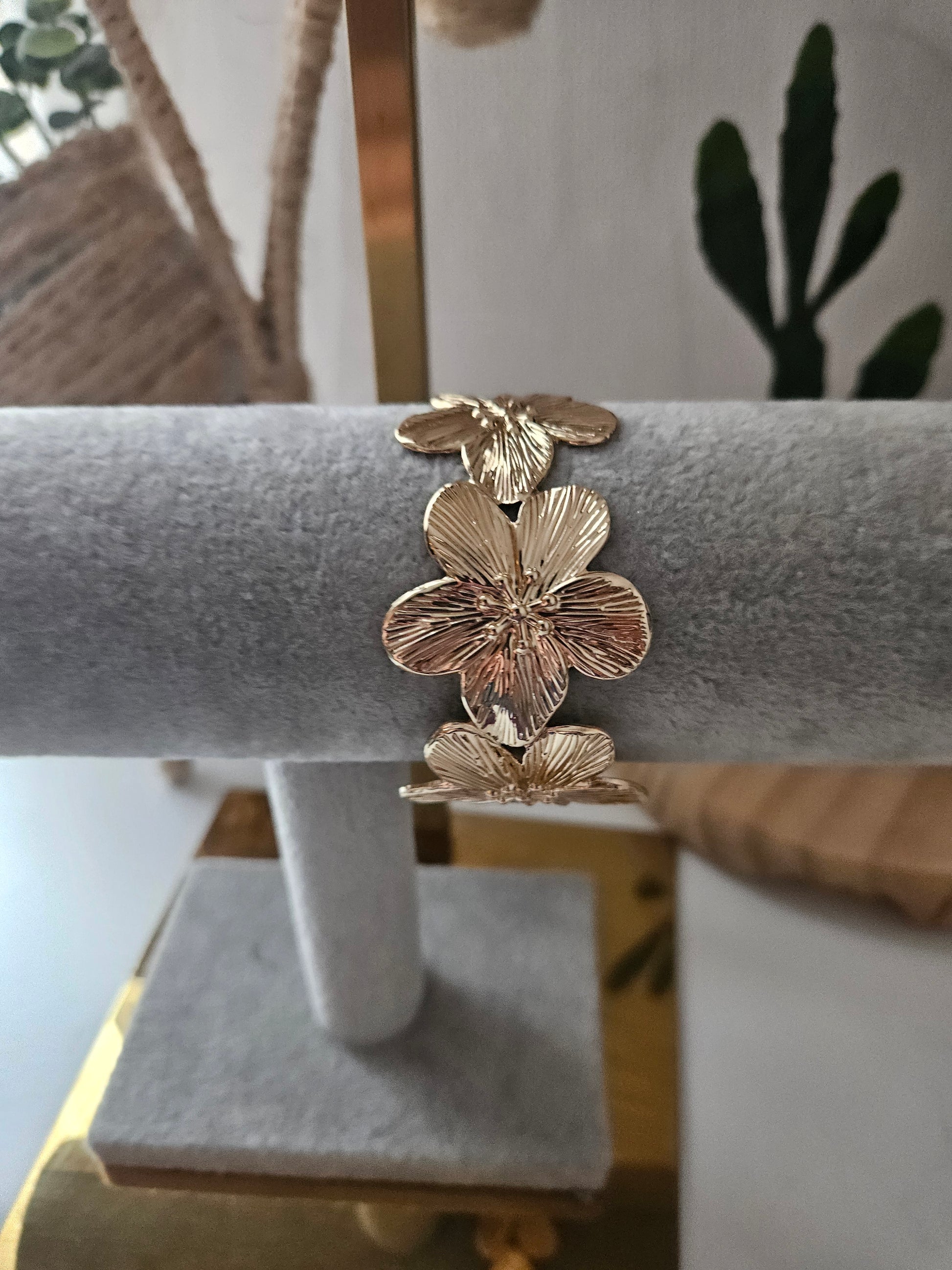 Bracelet manchette fleur doré 🌸 sculptée réglable