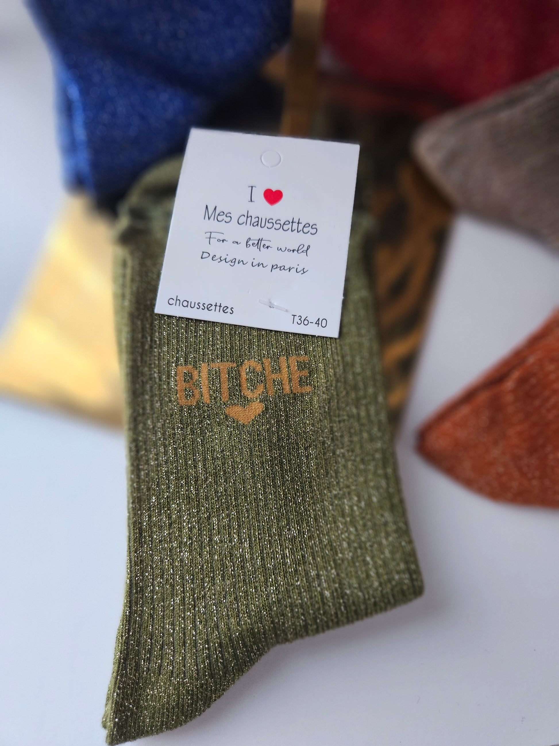 Chaussette automnale imprimé BITCHE, 77% coton, douces et élastiques, parfaites pour réchauffer vos pieds cet hiver.