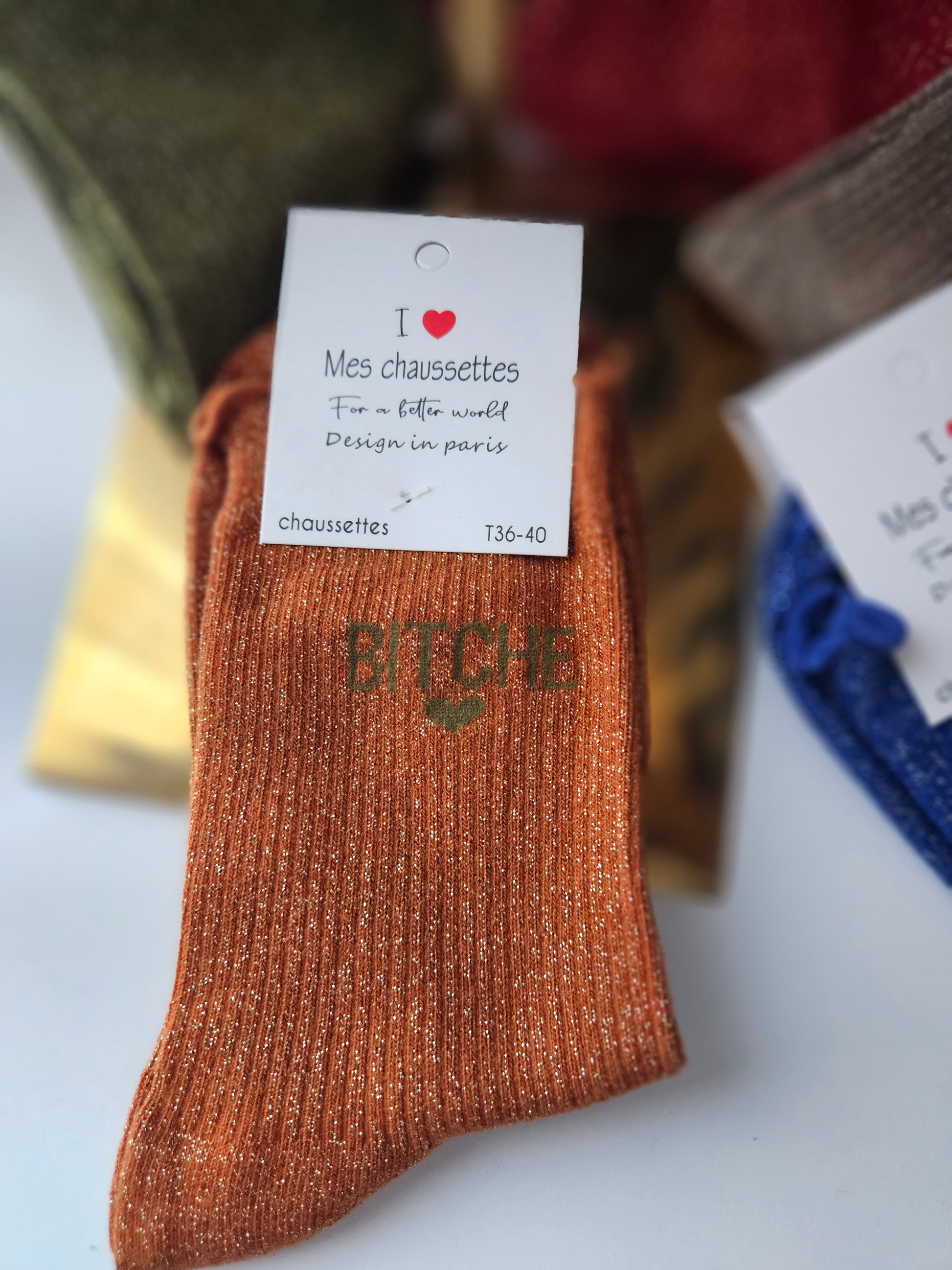 Chaussette automnale imprimé BITCHE, 77% coton, douces et élastiques, parfaites pour réchauffer vos pieds cet hiver.