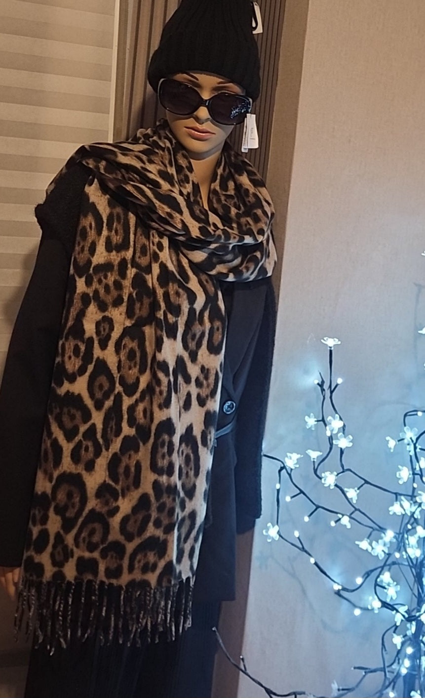 Echarpe extra longue bien chaude motifs léopard couleur taupe en 180cm ×70cm peut servir de châle.