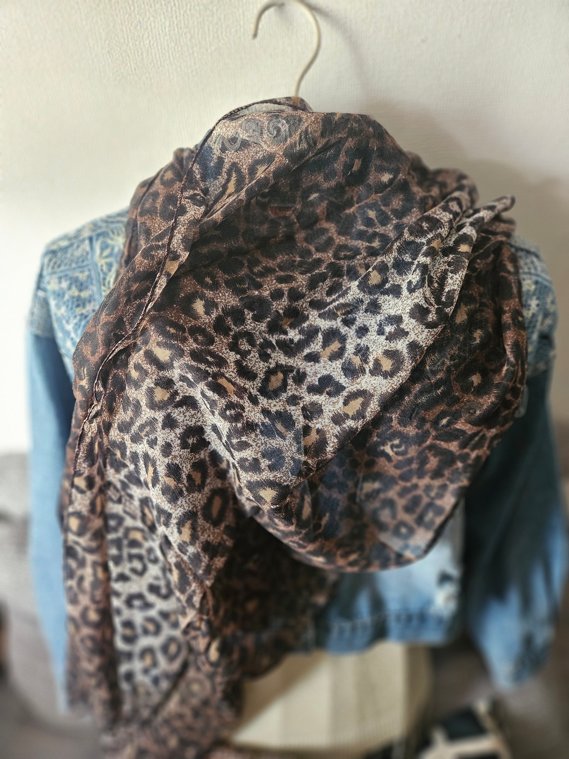 Joli foulard peut servir d'écharpe, motifs léopard degradé de couleurs très tendance. En 165cm ×60cm.