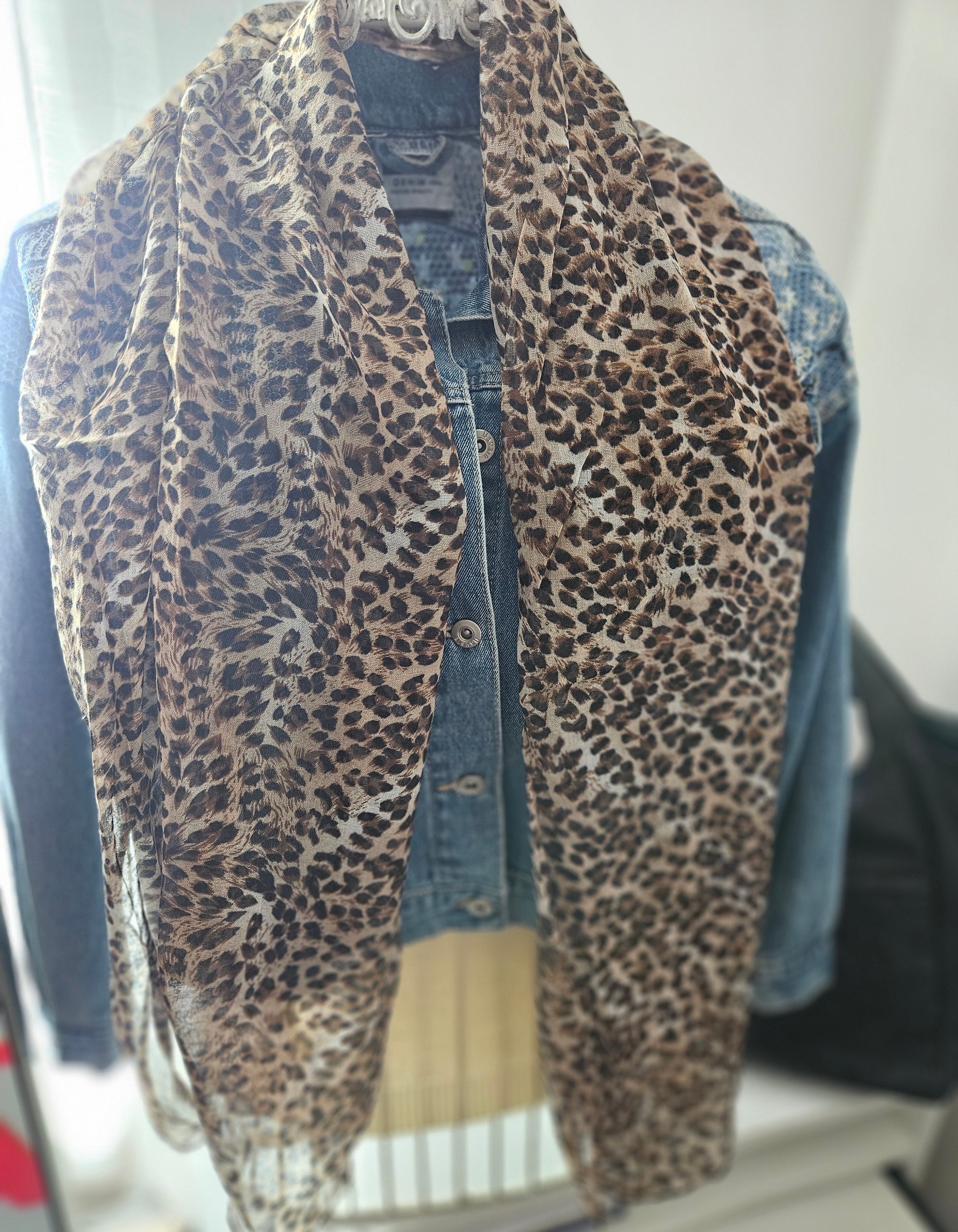 Joli foulard peut servir d'écharpe, motifs léopard de couleurs très tendance. En 165cm ×60cm.