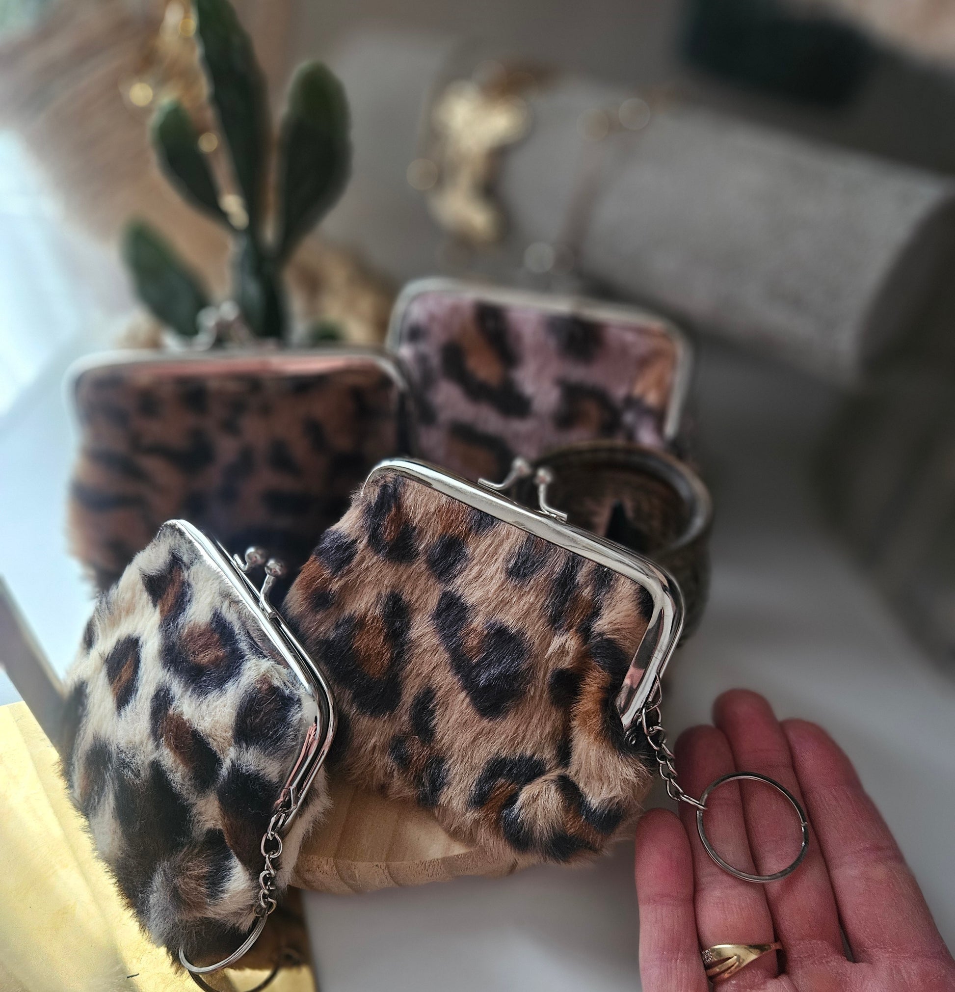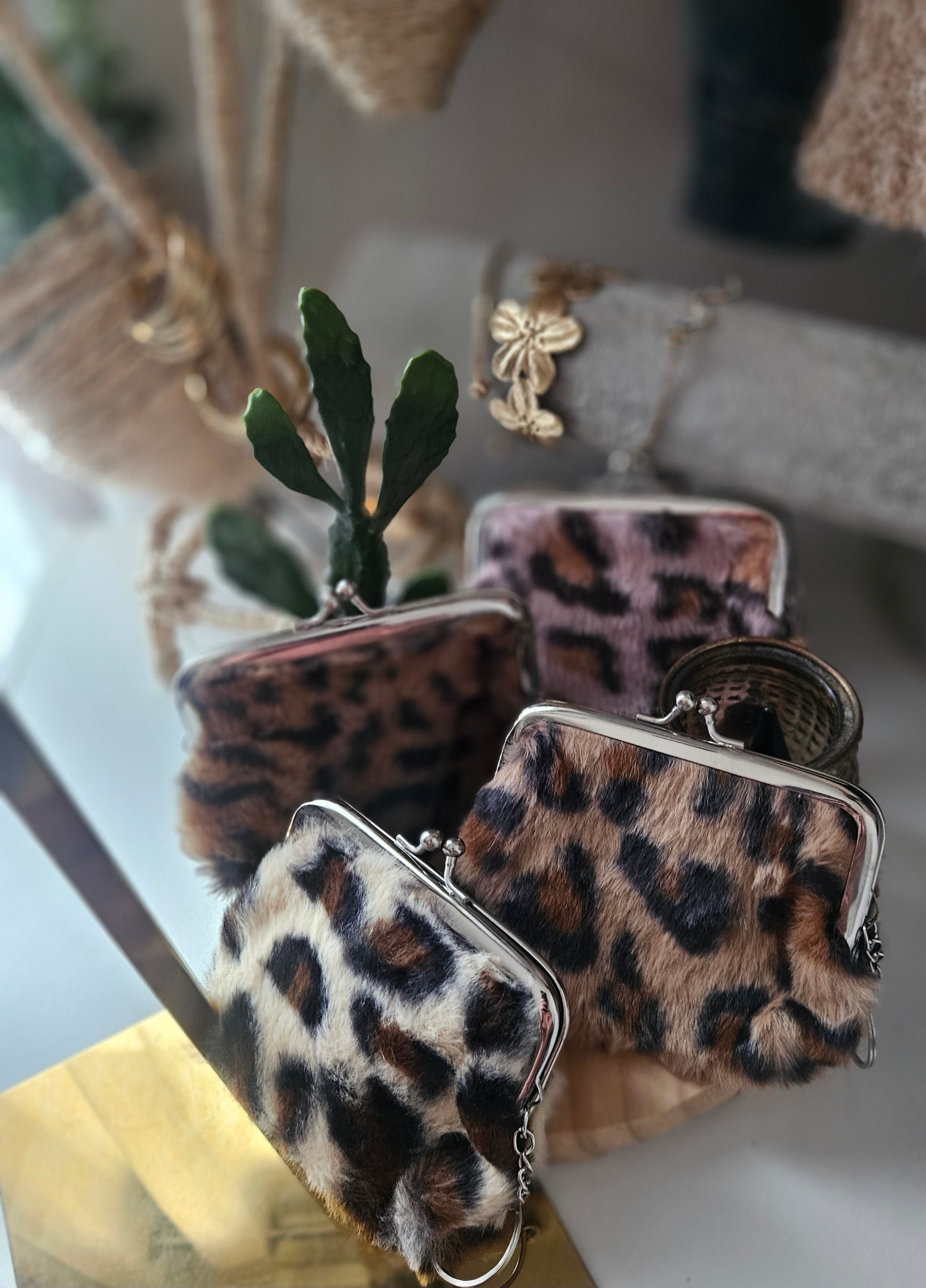 Porte monnaie en Fourrure léopard
