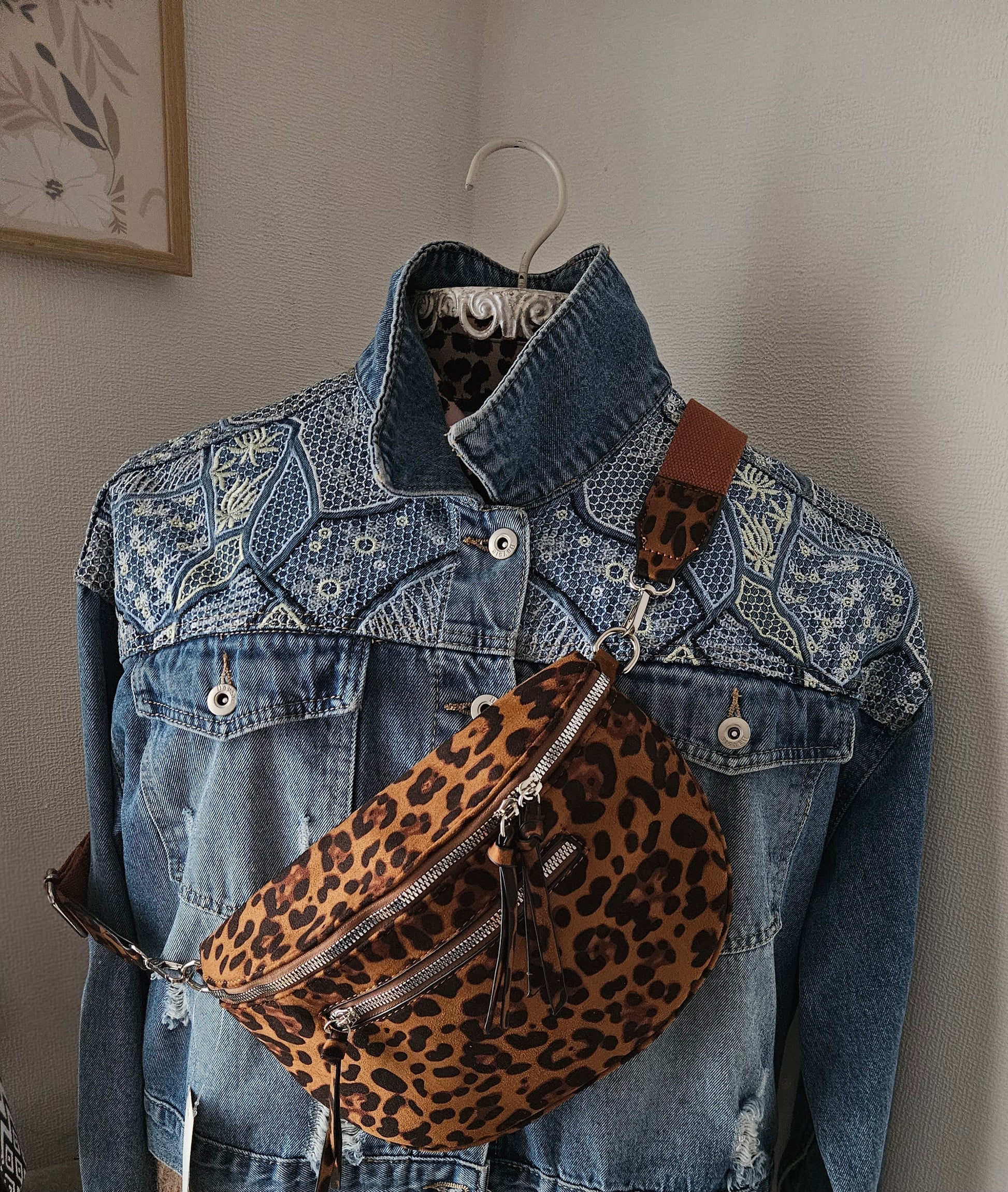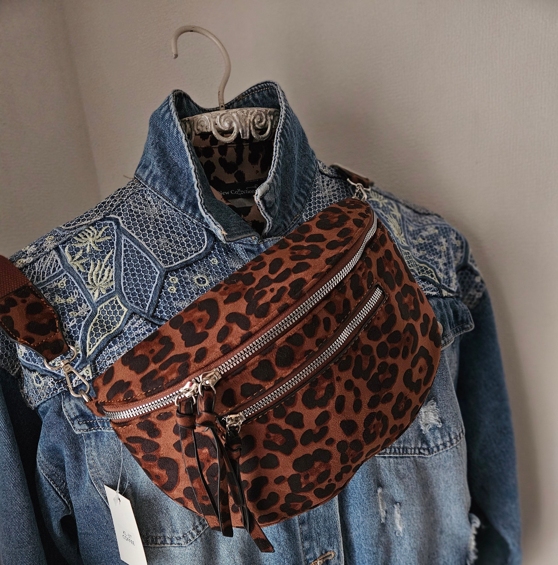 Grande pochette, sac banane crossbag tendance, daim avec bandoulière, grande fermeture extérieur, une fermeture intérieure et une fermeture derrière, belle couleur, en polyester. Dimension: 30 x 8.5 x 19 cm